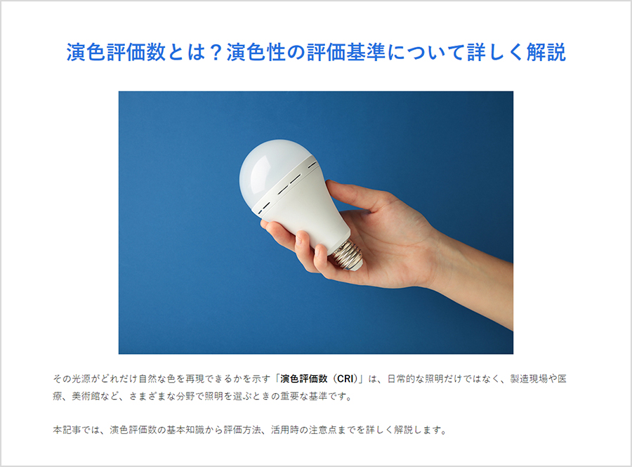 ・「演色評価数とは?演色性の評価基準について詳しく解説」ページはこちらから